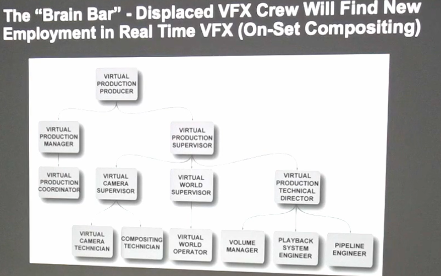 O facto de se utilizar a luz do painel LED implica também um trabalho minucioso com o engenheiro que opera o software Unreal Engine, dando-lhe mais ou menos luminosidade de forma a combinar com o cenário real em termos de intensidade de luz pretendida pelo diretor de fotografia.