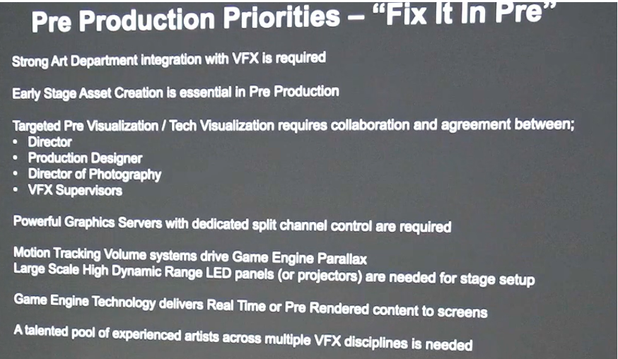 A preparação para este tipo de produção que combina imagem virtual com imagem real requerendo sincronismo de câmara com diversas outras ferramentas que se encontram na mesa principal de comando (brain bar) pede uma preparação exigente e rigorosa. Os tempos de perda para resolver diversos problemas técnicos que surgem dado ainda à pouca experiência com a tecnologia são muitos e diversos. Nomeadamente a velocidade da câmara (frame rate e do obturador) devem coincidir perfeitamente com todos os softwares em uso.